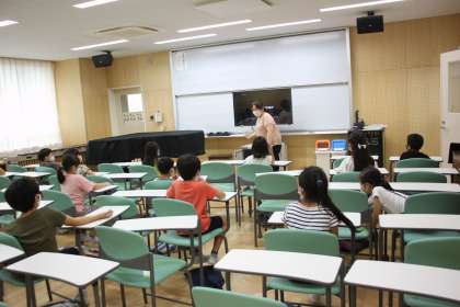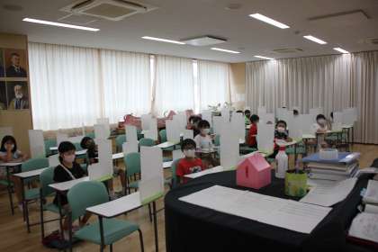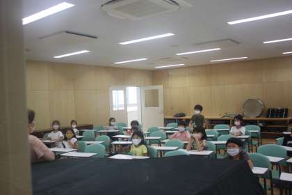 1クラスを2部屋に分けて、ソーシャルディスタンスを保った鍵盤ハーモニカ練習をしました。