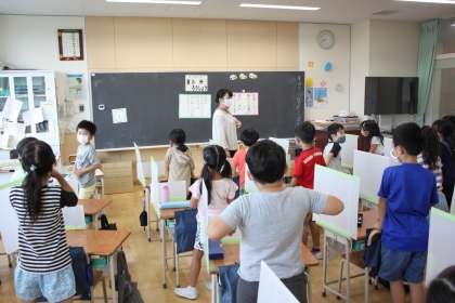 元気いっぱいに教育目標と2学期の言葉を朗誦しました。