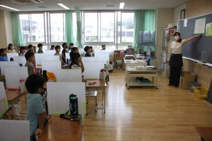 1年生が若小名物の若小朗誦に取り組んでいます。