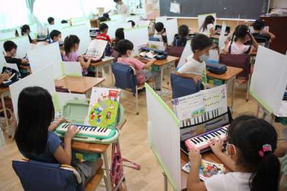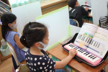 安全のために、まだ鍵盤ハーモニカを教室で演奏することはできませんが、先に指番号を覚えてしまいます。