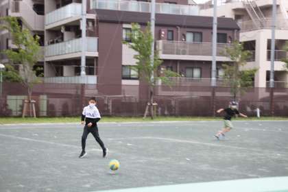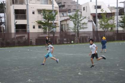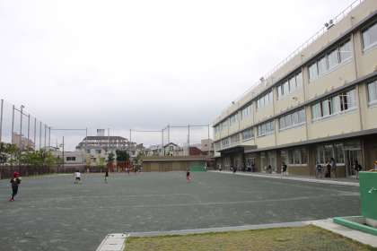 広い校庭で元気に遊ぶ若小の子たちでありました。、