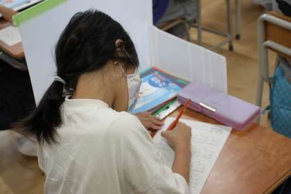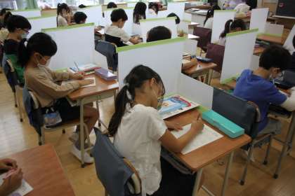 静まり返った教室内に、子どもたちの鉛筆の音だけが響きます。