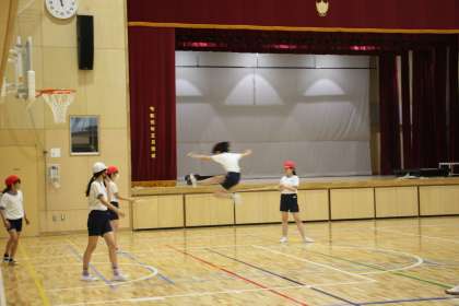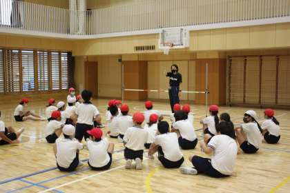 先生の説明をしっかり聞いて、記録を伸ばす6年生たち。
