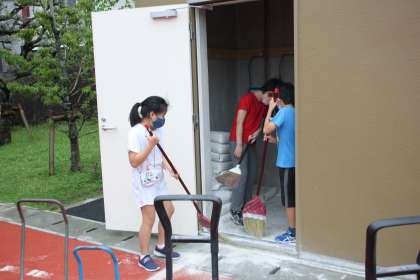運動委委員んさんが石灰倉庫の整備をしてくれています。