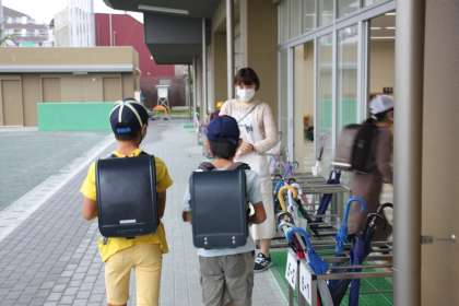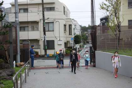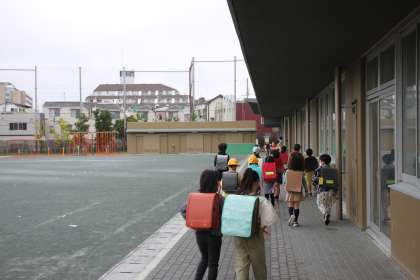 いつも通り、玄関では保健室の先生が子どもたちを迎え入れます。