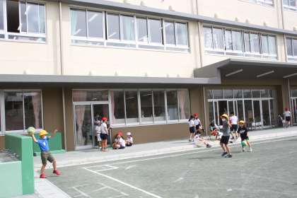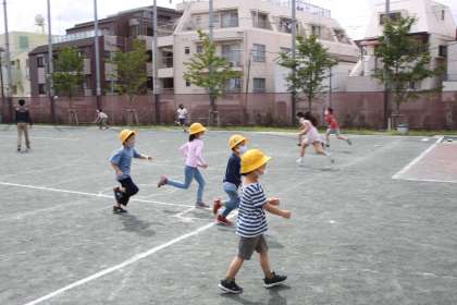 1年生が校庭で遊んでいます。