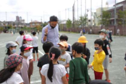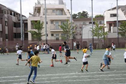 2年生は、担任の先生と一緒におにごっこを実施中!