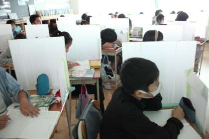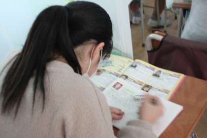 ビデオクリップを観たり、先生の説明を聞いたりしながら、政権の維持と国内の安定につとめた過去の偉人についてノートにまとめていきます。