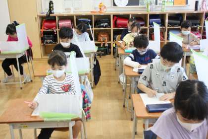 漢字の書き取りやテスト、計算の練習などが行われています。