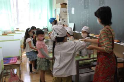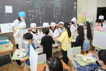 頼もしい1年生は、給食当番になるのを楽しみにしているようです。
