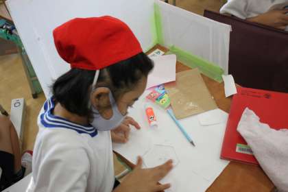 てっきり図工かと思いきや、実は算数の形の学習でした。