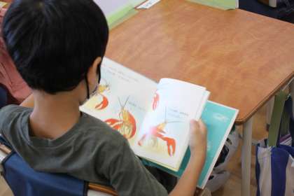 静かな一日のスタートが切れる、若小1年生たちでした。