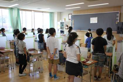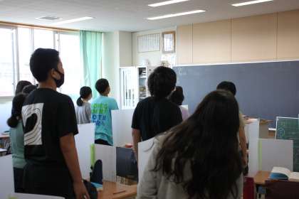 みんなで声をそろえ、各教室から元気のよい声が響いています。