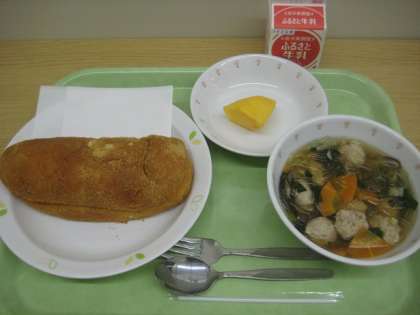 あげパン 肉団子入り春雨スープ 柿 牛乳