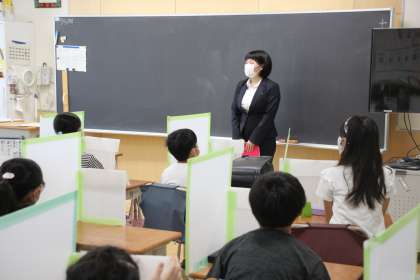 主に4年生で実習を行うため、早速朝の会に登場してもらいました。