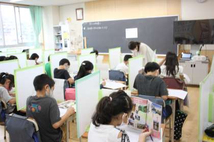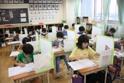 教育実習生も子どもたちに交じって、教室の後ろで指導法や内容について、メモをとります!