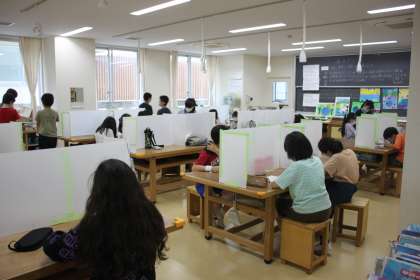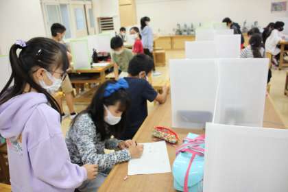 5年生が図工の時間に環境ポスター作りをします。