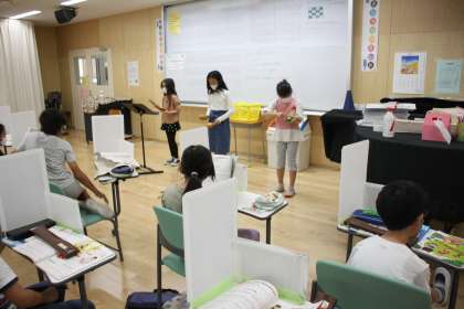 難しいウッドブロックのリズムもキッチリ演奏する4年生たち。