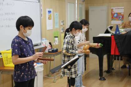 今日は「いろんな木の実」の音楽に、パーカッションを付けて歌いました。