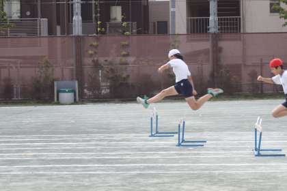 歩幅が合うと、とっても飛び越しやすくなるハードル走。