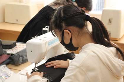 6年生が家庭科の学習で、トートバッグづくりに取り組んでいます。