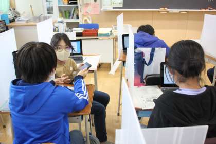自分で見つけたサイトを友だちと見せ合ったり、分かったことを共有したりと、学び合いにも大活躍のノートパソコン。