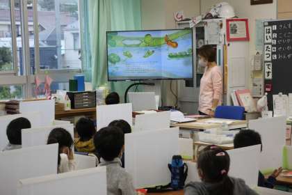 今朝の朝読書の時間には、担任先生「以外」の先生が教室にやってきて、楽しい読み聞かせをしてくれました。