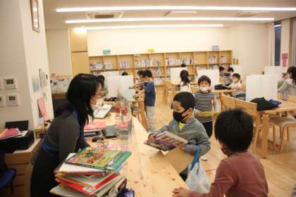 広く、明るく、快適な若小図書室は子どもたちにも大人気!!