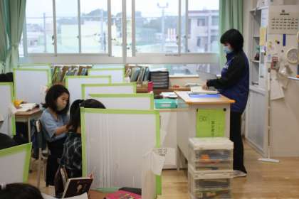順調に折り返し地点を迎えた実習生は、朝の健康カードのチェックや提出物のチェックをしています。