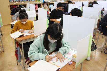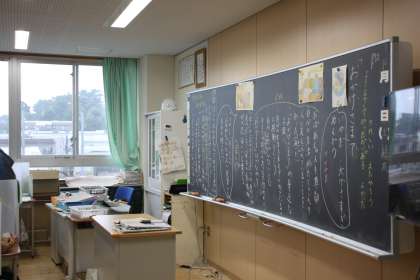 先生の言葉がしみいる6年生の教室でした。