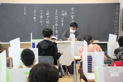 今日は作者である宮沢賢治の世界観について考え、自分の言葉で小論文を書きます。