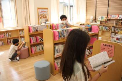 興味のある本を見つけては、座って静かに本の世界を楽しむ4年生。