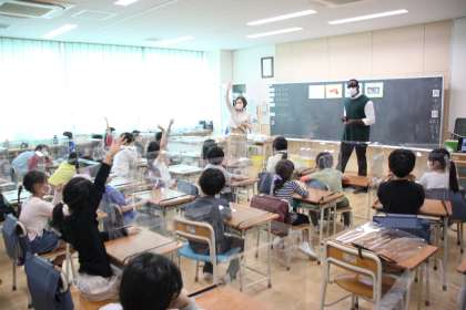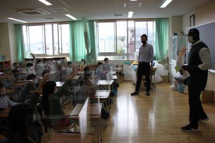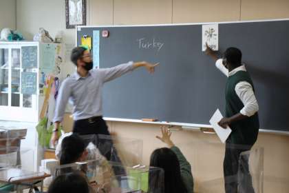 何とガーナからやってきたアミン先生に興味津々の2年生。