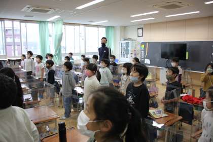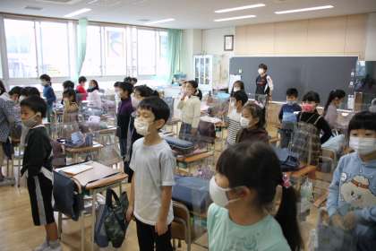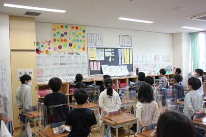 大きな声で、よい姿勢で、朗誦をする2年生。