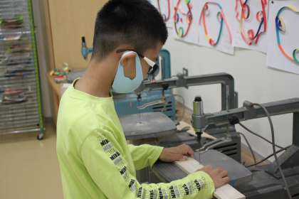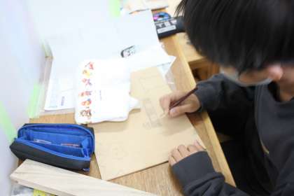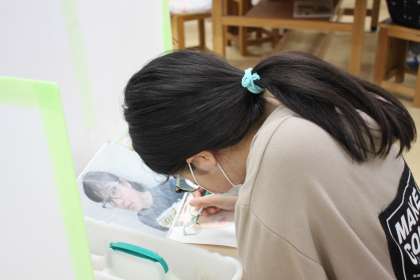 毎年、若小の6年生が画く自画像、そしてそれが終わった子から木工に突入します。