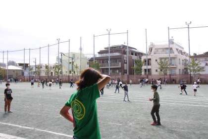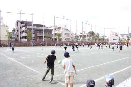 中休みの校庭では、子どもたちが元気いっぱいに遊んでいました。
