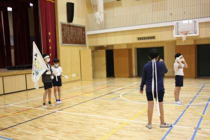 応援団の子たちが、土曜日の体育発表会に向けて、朝練習に励んでいます。