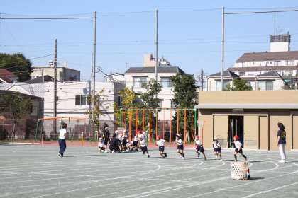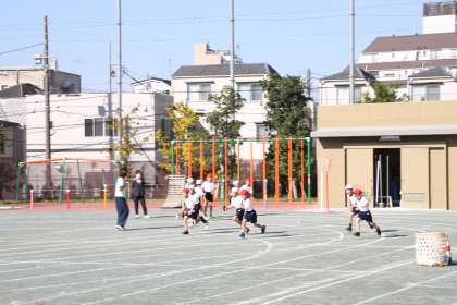 まっすぐ一直線に走る1年生たちに、友だちから声援がとびます。