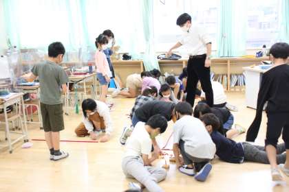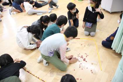 1平方メートルとはどれくらいの広さなのかを、ブロックを並べて表現しました。
