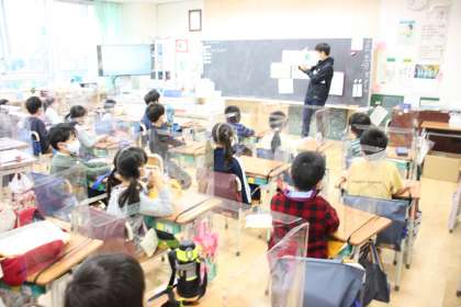 低学年から高学年まで、しっかりとお話を聴けた若小の子達。