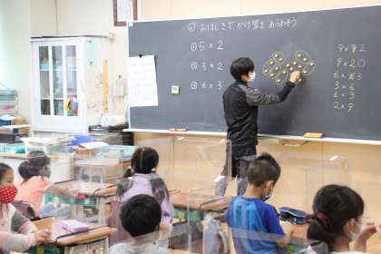 2年生が算数の時間にかけ算に取り組んでいます。