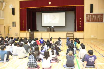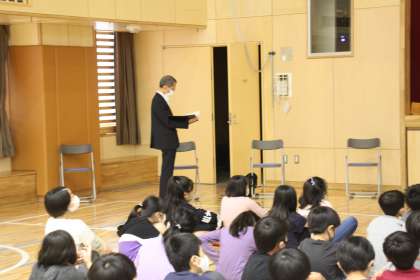 警視庁世田谷警察署から来て下さったスクールサポーターさんのお話を真剣に聞き入る4年生。