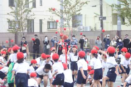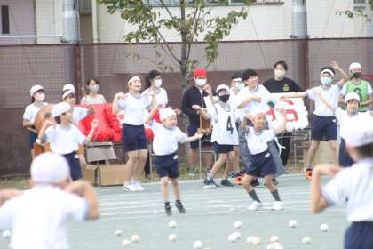 かわいいダンスの後、すぐに玉入れに切り替わります。