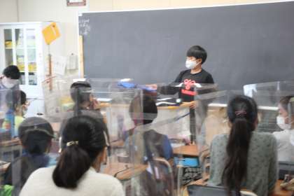 今日は完成したバッグを手に、特徴や工夫した点、使い道などについてアピールしながら、鑑賞しあう時間をとりました。