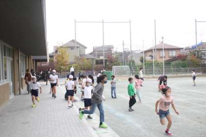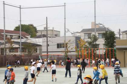 子どもたちがたくさん、校庭で元気に遊んでいます。