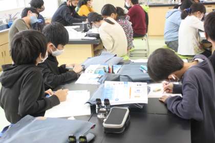 事前に先生から、どのようにして水溶液の違いを見分けるかという説明を受けます。