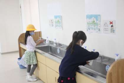 手洗いもしっかりして、学習への準備完了です!