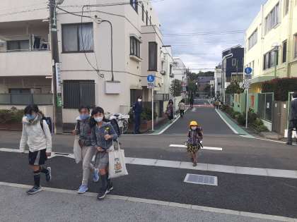 今朝も正門には警視庁世田谷警察署からお巡りさんが見守りに来てくれていました。