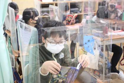 「いつも読みかけの本を」をスローガンに、読書に力を入れている若小。
