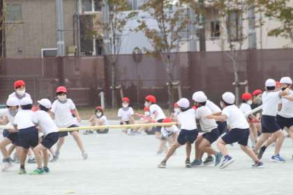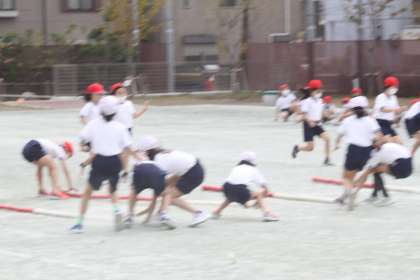 4年生が校庭で、体育発表会に向けての練習をしました。